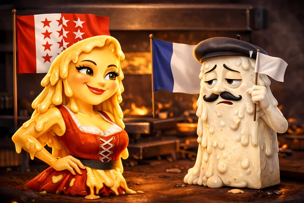 Die augenzwinkernde Rivalität zwischen Raclette Wallis und Raclette Frankreich.